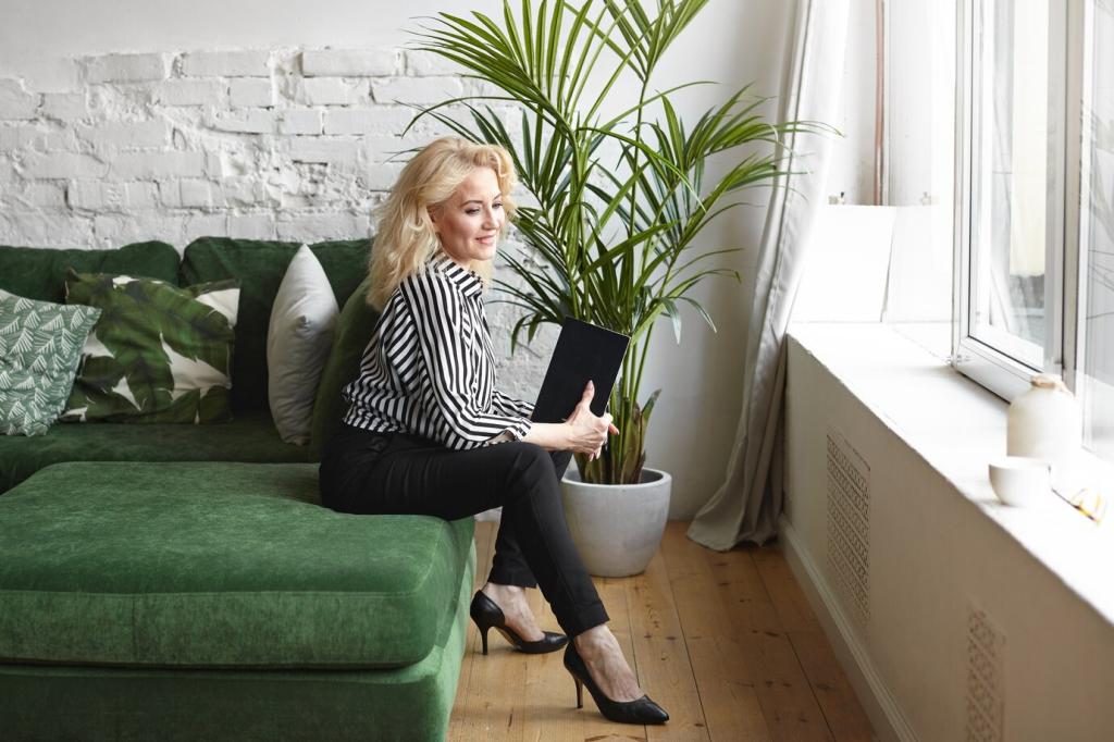 Leinen- oder Baumwollbettwäsche reguliert Feuchtigkeit und Temperatur, sodass du seltener schwitzt oder frierst. Schwere Leinenvorhänge beruhigen den Raum, filtern Licht angenehm und schaffen eine sanfte Privatsphäre. Welche Bettwäsche hat deinen Schlaf am stärksten verbessert? Schreib uns, wir sammeln Erfahrungen für eine Community-Liste.
